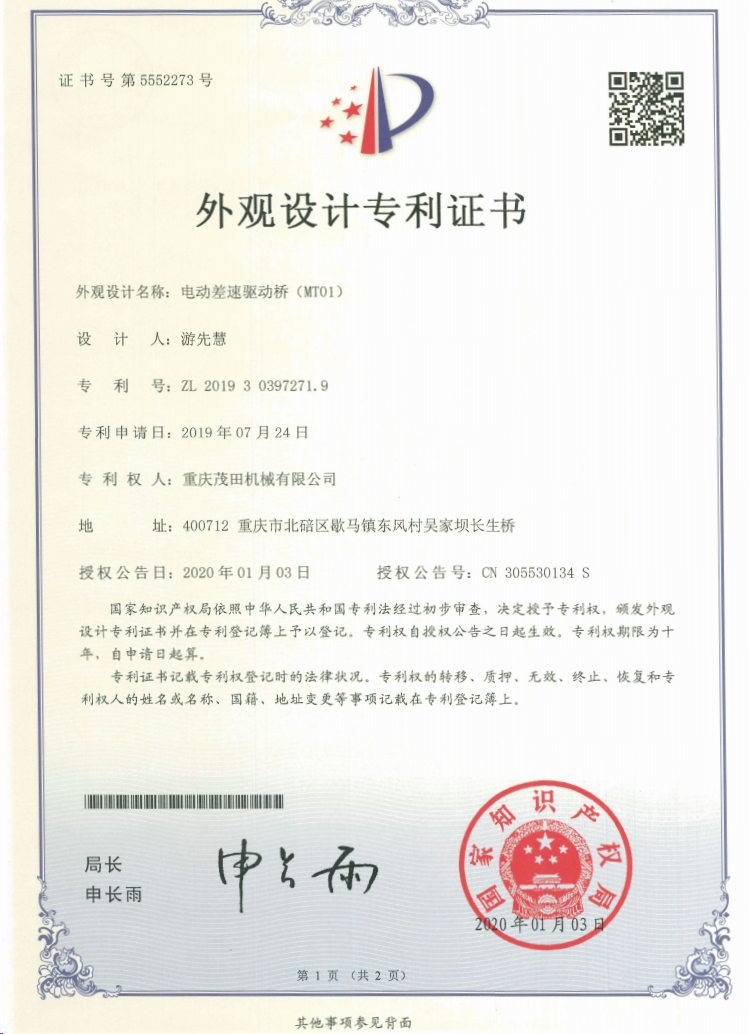 重慶茂田機(jī)械有限公司是國(guó)家級(jí)小巨人企業(yè)、國(guó)家高新技術(shù)企業(yè)、重慶市專精特新企業(yè)、重慶市知識(shí)產(chǎn)權(quán)優(yōu)勢(shì)企業(yè),致力于現(xiàn)代化山地農(nóng)業(yè)機(jī)械、各類非標(biāo)減速電機(jī)及其控制系統(tǒng)的研發(fā)、生產(chǎn)、銷售。擁有重慶市市級(jí)研發(fā)平臺(tái)1個(gè) 目前研發(fā)、生產(chǎn)、銷售產(chǎn)品廣泛應(yīng)用于農(nóng)業(yè)機(jī)械、醫(yī)療康復(fù)設(shè)備、交通代步工具、智能搬運(yùn)設(shè)備、以及機(jī)器人動(dòng)力系統(tǒng)等領(lǐng)域。我們的產(chǎn)品具有完整的自主知識(shí)產(chǎn)權(quán),擁有多項(xiàng)專利技術(shù)及“重慶